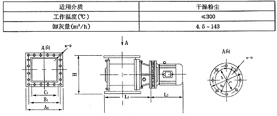 用途 該閥又名葉輪給料機、回轉下料器等,普遍適用于建材、冶金、化工、電力等部門作為各類除塵設備的卸料裝置及各種磨機、烘干機、料倉等設備的給卸料裝置。 結構特點 該閥采用鋼板焊接結構、葉片耐磨性好、葉片與傳動軸鋼性連接、結構緊湊、工作可靠、輕便節(jié)能。 工作原理 該閥由閥體、傳動軸、葉片和減速器等組成,減速電機帶動軸和葉輪旋轉,完成給卸料。 型號編制說明